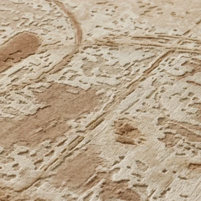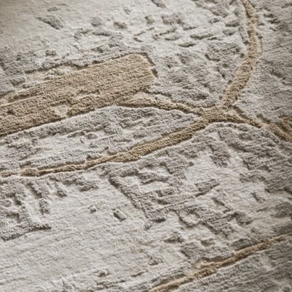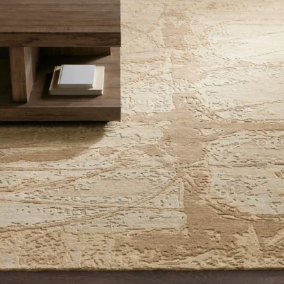 The interplay of matte and luster, paired with the texture from hand-spun yarns, enrich our A Rugswale Collection with organic variations. Abstract swirling detailing in contemporary hues create an earthly aesthetic underfoot.